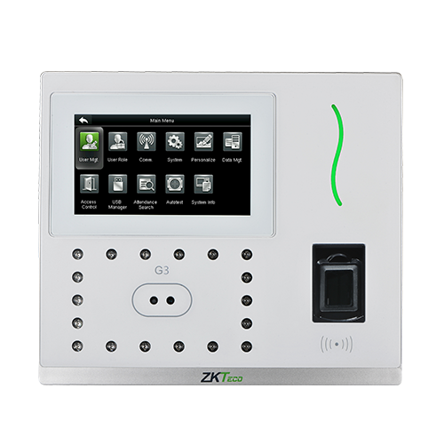 G3 is a multi-biometric identification terminal which features ZKTeco’s innovation Silk ID fingerprint sensor technology. With the world’s cutting-edge 3D Neuron Fingerprint Algorithm, it precisely authenticates dry, wet, or rough fingerprints efficiently and accurately. Infrared technology enables the device to function automatically when fingerprints are detected. With the latest facial algorithm, it supports fake face detection.